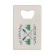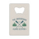 A rustic themed credit card bottle opener, featuring your family name and lake house, cabin, cottage or other desired text and its established date, all in rustic style typography. This unique, custom design features teal blue boat oars, paddles and pine trees in soft green. The designs cream base colour is easily customisable to match your current decor. To see more designs like this, feel free to visit my store here at "Zazzle.com/Rustic_Charm". Thanks.