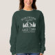 Women's sweatshirt displaying your personalised family name with "lake house" and lake name, location or other desired text. Features include a custom designed silhouette of rustic trees, mountains and lake. Feel free to visit my designer store to see more items like this. Thanks.