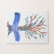 This stylish jigsaw is decorated with a colourful Family Tree design as well as a blue watercolor brush stroke.
