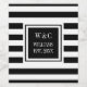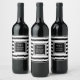 Stylish trendy personalised initials monogram wine label featuring a black and white striped pattern with your initials and family name with your established date set in a black-bordered square with a classic white text. Designed by Thisisnotme©