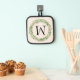 Enhance your kitchen with the rustic elegance of this sophisticated pot holder, adorned with a stylish antique laurel wreath motif and customised with your family's monogram. It offers an ideal fusion of practicality and aesthetic appeal.
