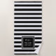 Family Name Monogram Navy Black White Stripe Beach Towel