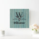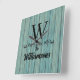 On this stylish wall clock are teal blue rustic wood planks with a letter and family name that you can customise it making it uniquely your own. Rustic farmhouse vibes.