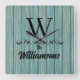 Family Name Monogram Rustic Blue Wood Wall Clock