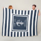 Family Name Navy Blue Striped Nautical Anchor Boat Fleece Blanket