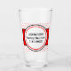 Personalised Family Reunion clear glasses. Personalise with your family's last name in capital letters and date of event. Click to customise to increase/decrease family name. Fun red polka dots on white background with black circles and lines. Cheery summertime pattern for get together's with family and friends for a picnic or BBQ. Original artwork and design © TamiraZDesigns.