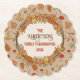 Colourful autumn leaves scattered with acorns and mushrooms. The perfect botanical design for Fall. The soft shades of brown, gold, terracotta, rust, peach, red, and tea green coordinate with almost any décor. Customise with your family name. This design will dress up your thanksgiving table and make cleanup a breeze!