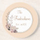 On a classic beige backround is a round circle adorned with shaded dusky pink and purple watercolor flowers where in the middle you can customise it with your family name and year. Stylish modern vibes.