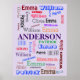 • Features customizable words and family name in striking word cloud form