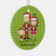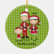 This will be a keepsake of all times! It's an adorable family dressed in red Santa outfits and hats. It has a light green background with darker green dots in a row. There's a Dad, Mum, and a baby girl . Check out the other family combinations and ornaments in our store. ©JW Illustrations