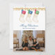 Family of 3 - Watercolor Monogram Stockings Photo Holiday Card