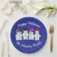 Family of Four Snowmen Blue Sparkle Winter Paper Plate