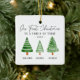 A holiday ornament that celebrates your first Christmas as a family of three. This makes a great gift for new parents! Add your names under each watercolor tree.