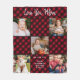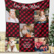 Family Personalised Red Plaid 5 Photo Collage Fleece Blanket