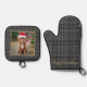 Family Pet Dog Photo Personalised Grey Plaid Oven Mitt & Pot Holder Set