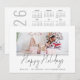 Family Photo 2026 Calendar Script Happy Holidays. Simply replace the sample photo with your own and personalise with your greeting and names at the bottom. Happy Holidays is in a stylish set script. On the back is a handy 2026 calendar for your recipients.
