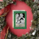 Modern photo Christmas elegant cross script green Foil Holiday Card. Tips: your pic will be automatically converted to Black & White after upload.