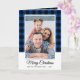 Family Photo Blue Buffalo Plaid Merry Christmas Card