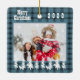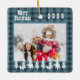 Family photo Christmas blue plaid country style Ceramic Ornament