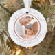 This modern personalised Christmas ornament features an elegant faux rose gold design with faux marble background. Personalise the name, year and photo. This template works best with landscape format photos with the subject in the centre.