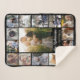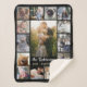 Snuggle up with your family or wedding memories with this beautiful photo collage sherpa blanket. This design includes one large central vertical photo, along with 2 smaller vertical photos and 12 square Instagram-style pictures. Add your name in very light grey. The words "Love - Happiness" can also be changed or left as-is (they are currently in light yellow). The simple templates make it easy to personalise. Choose your own blanket size. "Customise further" to make more detailed changes.