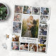 Celebrate your family or wedding memories with this beautiful photo collage jigsaw puzzle. This design includes one large central vertical photo, along with 2 smaller vertical photos and 12 square Instagram-style pictures, all on a white background. Add your name in gray. The words "Love - Happiness" can also be changed or left as-is. The simple templates make it easy to personalize. Choose your own puzzle size and piece count. "Customize further" to make more detailed changes. Find more collage products here, including more fun photo puzzles: https://www.zazzle.com/store/picturecollage