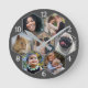 Family Photo Collage 7 Custom Grey Hexagon Flower Round Clock