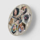 Family Photo Collage 7 Custom Taupe Hexagon Flower Round Clock