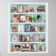 You won't find a more unique and beautiful way to display your family or wedding memories than this beach-themed photo collage wall poster. This gorgeous, nautical poster includes 19 of your personalised pictures, made to look like they're sitting in frames on a light teal-blue wooden bookcase. Your photos are surrounded by vintage books, a clock, and souvenirs from the seaside, including: shells, flowers, coral, a seagull, a model ship, a pineapple, a lighthouse, a starfish, a fish, and an anchor. Your monogram sits on the middle shelf. The colours are mostly teal blue, navy blue, cream, and light coral pink with hints of faux brass, gold, brown, green, and red. TO PERSONALIZE: Use the simple templates. Just follow the instructions and your photos will fill the frames. Tip: Any photo shape will fill each frame (so if you upload a square in the place of a vertical, it will still fill the frame, but some will be cut off). For help, contact PictureCollage.