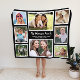 Celebrate your family with this custom black blanket featuring an 8 photo collage of your family, pets, memories etc., in white frames, your family name in a white script and everyone's names in simple white typography.