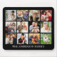 Modern Minimalist Simple 12 Photo Collage Family Photos with Name Mouse Pad - Black & White or Choose your background colour