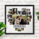 Display your family or wedding memories with this beautiful photo collage wall poster in white and grey with your pictures in the shape of a heart. This cute design includes room for 17 photographs: 9 horizontal, 2 vertical, and 6 Instagram-style square. Your photos will automatically adjust to make the heart shape (for instance: if you upload a square photo instead of horizontal in the centre, your photo will fill the horizontal shape). The design also includes your family name in elegant cursive. Use the simple templates to personalise. "Customise further" to make more detailed changes, such as changing the font or text size. Contact PictureCollage for assistance.