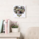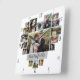 Family Photo Collage Heart 17 Pictures Name White Square Wall Clock