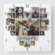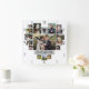 Display your family or wedding memories with this beautiful photo collage clock in white and grey with your pictures in the shape of a heart. This cute design includes room for 17 photographs: 9 horizontal, 2 vertical, and 6 Instagram-style square. Your photos will automatically adjust to make the heart shape (for instance: if you upload a square photo instead of horizontal in the centre, your photo will fill the horizontal shape). The design also includes your family name in elegant cursive. Use the simple templates to personalise. "Customise further" to make more detailed changes, such as changing the font or text size. Contact PictureCollage for assistance.