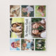 A fun jigsaw puzzle for your family game nights featuring an 8 photo collage of children, pets, memories, etc., your family name in a stylish script and first names in simple modern typography.