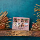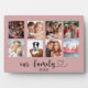 Make your own unique family photo collage. Use four, 8 of your favourite photos of your family, friends or pet! A dusty rose coloured background. Black text: our family - with a heart. Add a year.