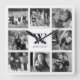 Family Photo Collage Monogram Black and White Square Wall Clock