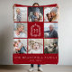 Family Photo Collage Monogram Crest Cranberry Red Fleece Blanket