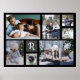 Family Photo Collage Monogrammed 7 Pictures Black Poster