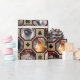 Celebrate Christmas and all winter occasions with this beautiful personalised photo collage wrapping paper. The design has the look of a rustic country quilt. Each photo includes a red and black buffalo plaid border. The squares between photos have a printed burlap effect with silhouettes of moose, deer, bears, buffalo, snowflakes, pines, cabins, and leaves. In total, up to 28 of your photographs tile across the gift wrap. Use the easy templates to upload your pictures and they will automatically fill the octagonal quilt shapes. Spruce up your holiday gift giving with this stunning, custom wrapping paper!
