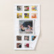 Customise this hand towel with 13 square photos arranged in a grid collage layout, with one large image and the remainder small. Add your family name or custom caption along the bottom in chic grey.