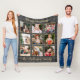 Family Photo Collage Winter Grey Patchwork Plaid Fleece Blanket