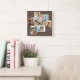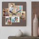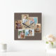 Family Photo Collage Wood Grain Border Brown Square Wall Clock