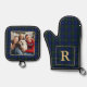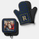Family Photo Custom Modern Elegant Christmas Plaid Oven Mitt & Pot Holder Set