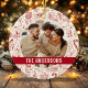 Make your tree extra special with a cute doodle Christmas ornament. A warm cream backdrop and quirky red illustrations of Santa, a gingerbread house, gifts, bells, snowflakes, stockings, nutcracker, and candy canes frame a precious photo and your family name at the centre. add this one-of-a-kind ornament to your holiday collection today.