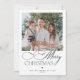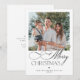 Simple minimalist modern script typography black and white one 1 photo Merry Christmas holiday card with text template on the backside.