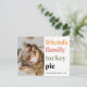 Share the warmth of the season with this modern and colourful Thanksgiving photo card. Featuring bold typography in autumn-inspired tones that read Friends, Family, Turkey, Pie, alongside space for your favourite family photo, this card is perfect for sending gratitude and holiday cheer. Personalised with your family name and year, it makes a stylish keepsake your loved ones will treasure. Ideal for Thanksgiving greetings, fall celebrations, and family photo announcements.