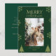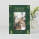 The design shows a merry christmas card with a customisable family photo along with christmas tree and snow flakes with deep green background.The design is unique and will be ideal for anyone.