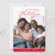 FAMILY PHOTO Happy Holidays cute calligraphy red Holiday Card