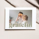 Share your gratitude in style with this modern minimalist “Grateful” photo card, designed with elegant sage green typography layered over your favourite family photo. Personalise with your family name and year for a timeless keepsake perfect for Thanksgiving, Christmas, New Year, or any moment worth celebrating. A warm, contemporary design that’s ideal for sending heartfelt holiday wishes to friends and family.